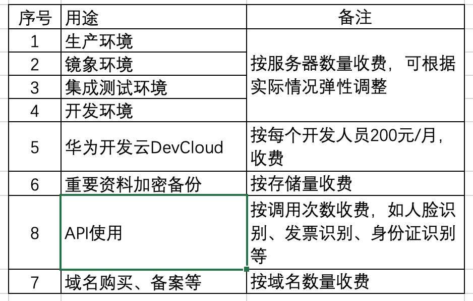 激励形式还可以多样化,比例还可以提高(如到15%-30%,目前为5%)。这部分收入,不受法律保护,有利于激发员工的主动性、积极性,也有利于公司掌握支出的主动性(业务好就多支出激励,业务不好时收缩激励)。大力挖掘招聘有实力的实习生,早日进入公司实习。工资成本相对较低,也不用购买社保公积金。也有利于人才梯队建设。我们主要使用的是华为云,采用预充值后消费模式,公司公对公付款给华为公司。 可以看到,公有云的使用量是随着时间、业务量、业务系统的复杂度慢慢上升的。